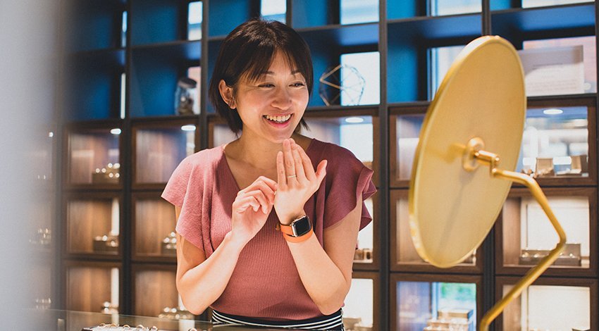 結婚指輪と重ね付けも。人生の節目に今の自分のためのリングをあつらえる