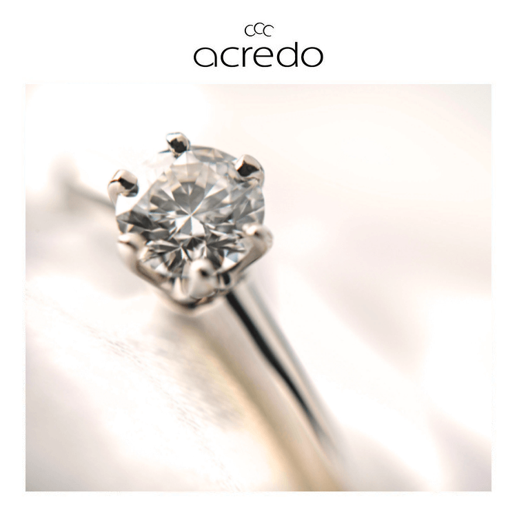 現在、婚約指輪には、ダイヤモンドを用いるのが一般的です。非常に硬い宝石であることから、変わることのない誓いを象徴し、ふたりの人生が輝き続けることを願ってのことだと言われています。また希少性が高く、非常に高価なことから、結婚を申し込む覚悟にふさわしい宝石と考えられているようです。アクレードでも婚約指輪のために、誓いと約束にふさわしい特に厳選したダイヤモンドを用意しています。